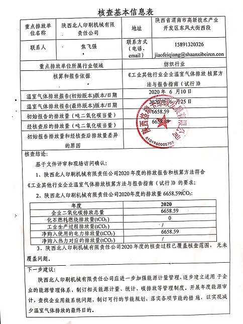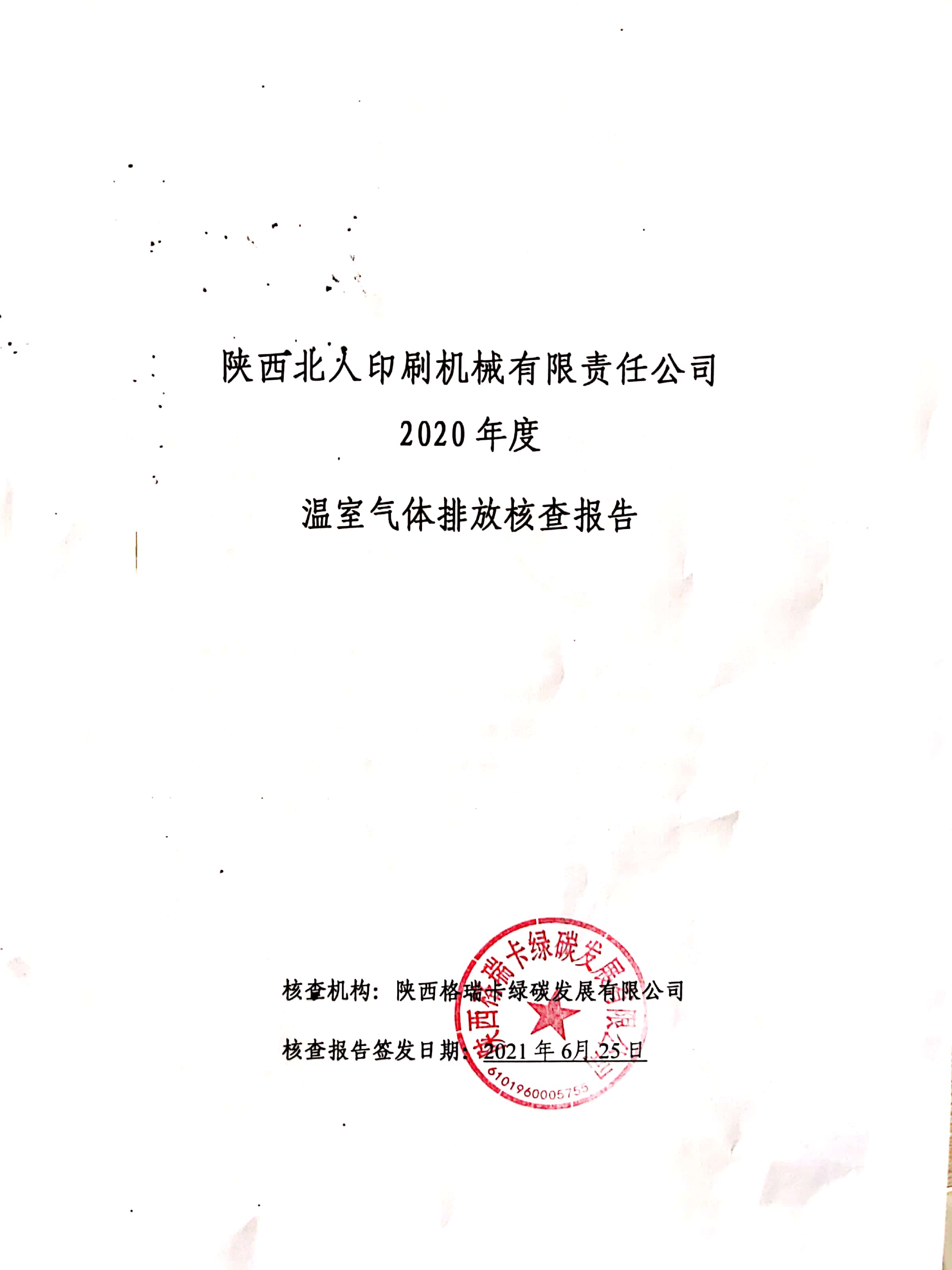 陜西北人印刷機(jī)械有限責(zé)任公司建設(shè)綠色工廠,現(xiàn)將第三方《溫室氣體排放核查報(bào)告》向社會(huì)各界公示,歡迎監(jiān)督。
