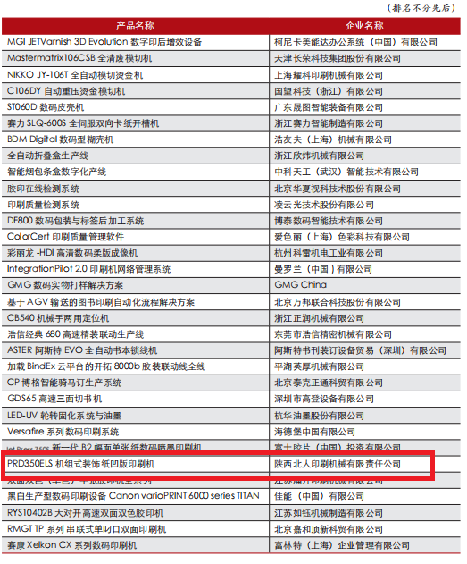 與此同時,由《印刷工業(yè)》雜志社發(fā)起的“2022中國印刷裝備用戶好評活動”結果也隆重揭曉,共有32家企業(yè)的32個產品獲得用戶好評。陜西北人PRD350ELS機組式裝飾紙凹版印刷機獲頒“2022中國印刷用戶好評裝備”獎殊榮!