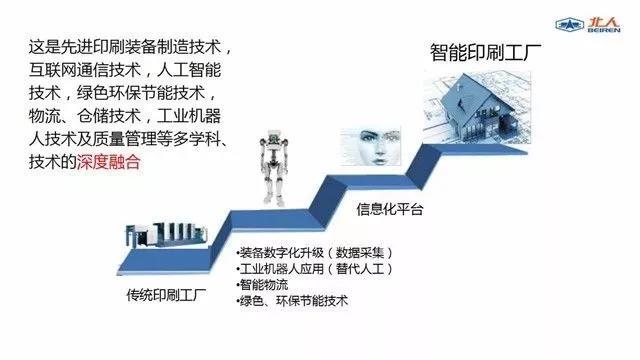 那么,什么是智能印刷工廠呢?智能印刷工廠是依靠自動化與信息化技術(shù)的融合,將印刷企業(yè)生產(chǎn)全流程智能化,成為精益生產(chǎn),綠色環(huán)保、人性化的印刷工廠。它是先進印刷裝備制造技術(shù),互聯(lián)網(wǎng)通信技術(shù),人工智能技術(shù),綠色環(huán)保節(jié)能技術(shù),物流、倉儲技術(shù),工業(yè)機器人技術(shù)及質(zhì)量管理等多學科、技術(shù)的深度融合。