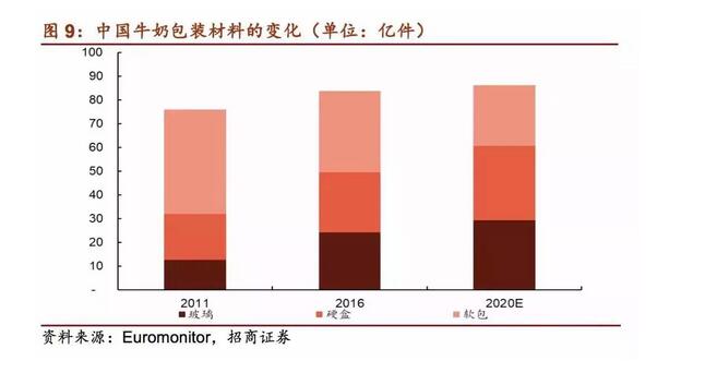 消費(fèi)品包裝品類(lèi)和設(shè)計(jì)變化快是中國(guó)消費(fèi)品包裝區(qū)別于全球市場(chǎng)的另一大差異。與國(guó)際成熟市場(chǎng)相比,中國(guó)的消費(fèi)品市場(chǎng)發(fā)展變化快,對(duì)展示銷(xiāo)售包裝的設(shè)計(jì)也提出了常新的要求。例如中國(guó)牛奶包裝材料自2011年至2016年經(jīng)歷了玻璃包裝重新起量、軟包規(guī)模占比不斷下降的結(jié)構(gòu)性變化。