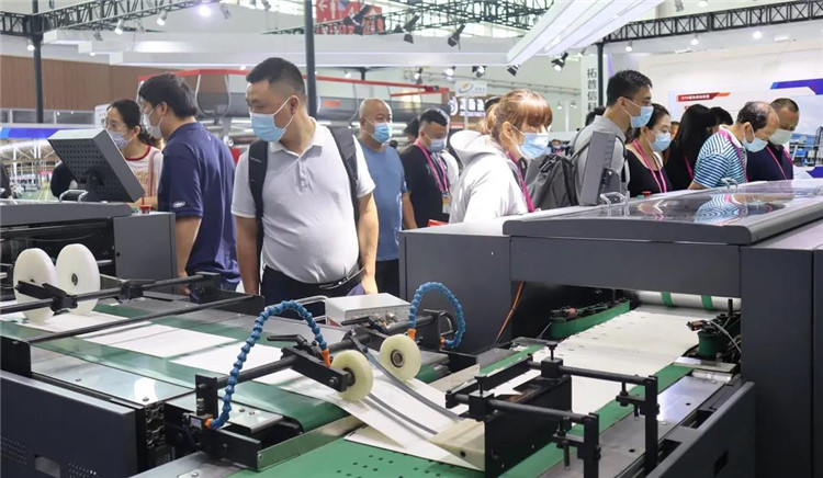 參展觀眾觀看北人智能SMLX200A數(shù)字印后生產(chǎn)線產(chǎn)品演示