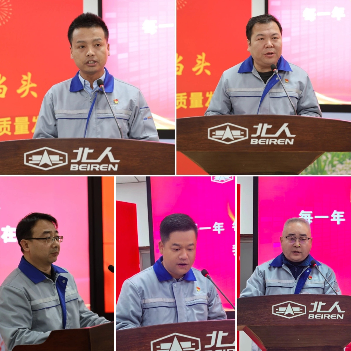 隨后,公司軟包設(shè)備事業(yè)部王曉博、研究所魏克亮、部件裝配中心馮青山、國際業(yè)務(wù)部孫虎寧、質(zhì)量管理部張永豐,先后從市場開拓、產(chǎn)品研發(fā)、生產(chǎn)組織、國際業(yè)務(wù)拓展和質(zhì)量管理等方面進(jìn)行了表態(tài)發(fā)言,就如何具體落實2025年黨政工作報告,推進(jìn)重點(diǎn)工作發(fā)出了行動宣言。