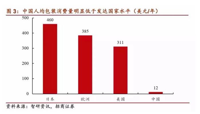 需求端:中國(guó)人均包裝消費(fèi)偏低,快遞需求驅(qū)動(dòng)仍然強(qiáng)勁